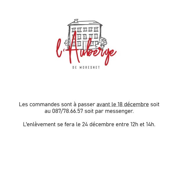 🌲🎅 Pour cette fin d'année 2024, on vous propose 𝘂𝗻 𝘀𝗲𝗿𝘃𝗶𝗰𝗲 𝘁𝗿𝗮𝗶𝘁𝗲𝘂𝗿 pour le #réveillon de Noël. 👉 Huîtres, entrées, plats et desserts préparés par le chef de l'Auberge De Moresnet et à déguster chez vous !
