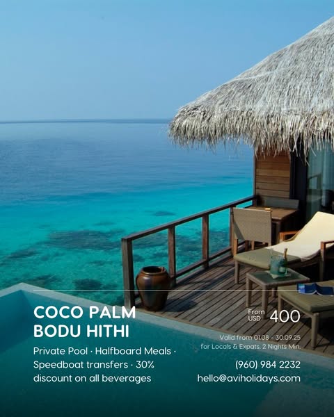 搜索关键词 Maldives resort deals, beach holiday offers, local travel packages, expatriate travel offers, Maldives summer deals, luxury resort vacations, aviholidays travel, overwater bungalow deals, beachfront escapes, travel discount deals优势 Exclusive late summer offers,Beachfront and overwater accommodations,Deals for Locals & Expats
