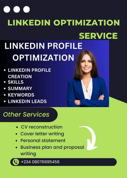 WE SPECIALIZE IN HELPING INDIVIDUALS CRAFT THE BEST RESUMES, PERSONAL STATEMENT, BUSINESS PLAN/PROPOSALS AND LINKELDN OPTIMIZATION. IF YOU ARE LOOKING FOR WHERE TO GET THE BEST QUALITY SERVICE, PLEASE MESSAGE US TODAY.
