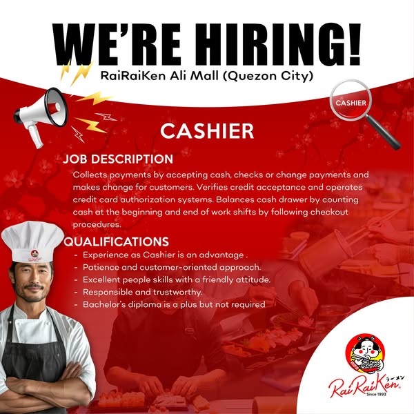Are you passionate about great food and excellent customer service? We’re looking for motivated and enthusiastic individuals to join our team!#rairaikenalimall