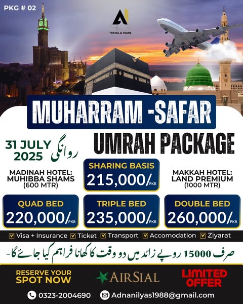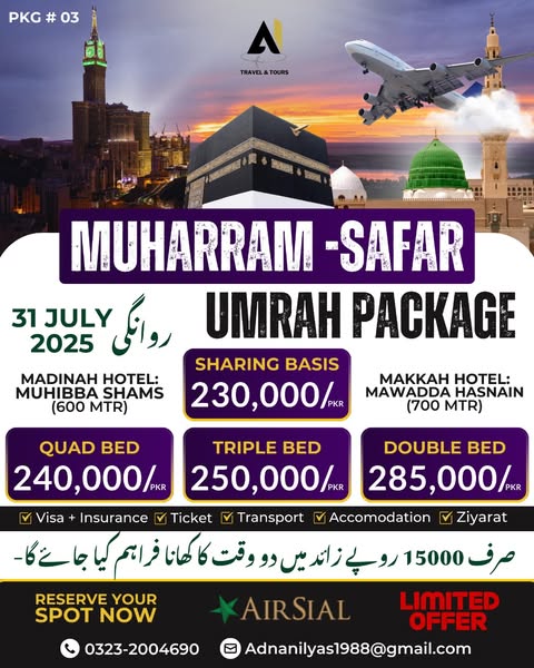 #Umrah2025 #MuharramUmrah #SafarUmrah #SpiritualJourney #AiTravelsAndTours #Makkah #Madinah #UmrahDeals #LimitedOffer #BookNow #UmrahPackages