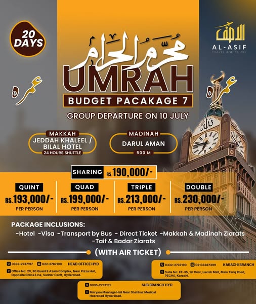 #AlAsifTravel #MuharramUmrah #AffordableUmrah #umrah2025 #UmrahPackages #GroupTravel #makkah #madinah #booknow #UmrahZiyarat #PeacefulJourney