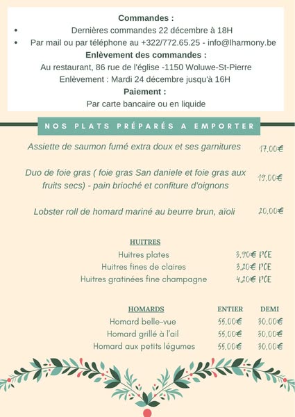 Comme chaque année, L’Harmony s’occupe de votre repas de fête ! Découvrez notre menu 3 services à emporter le 24 décembre au plus tard, parfait pour un réveillon gourmand et sans stress 🤩✨🥂🎅🏽🧑🎄🎁