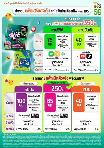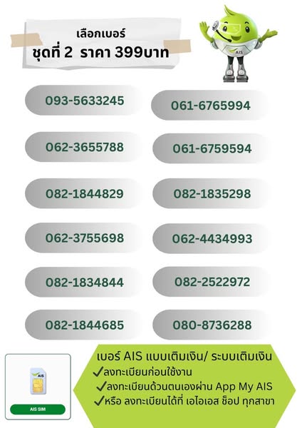 UPDATE 💚✨✨เบอร์เอไอเอส นัมเบอร์ นำโชค (เบอร์ผลรวมนำโชค) แบบเติมเงิน และ The ONE sim💚✨✨
