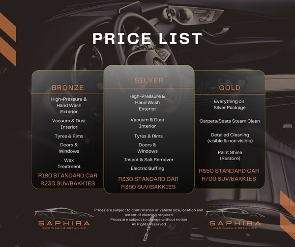 主页名字Saphira Mobile Car Wash & Detailing