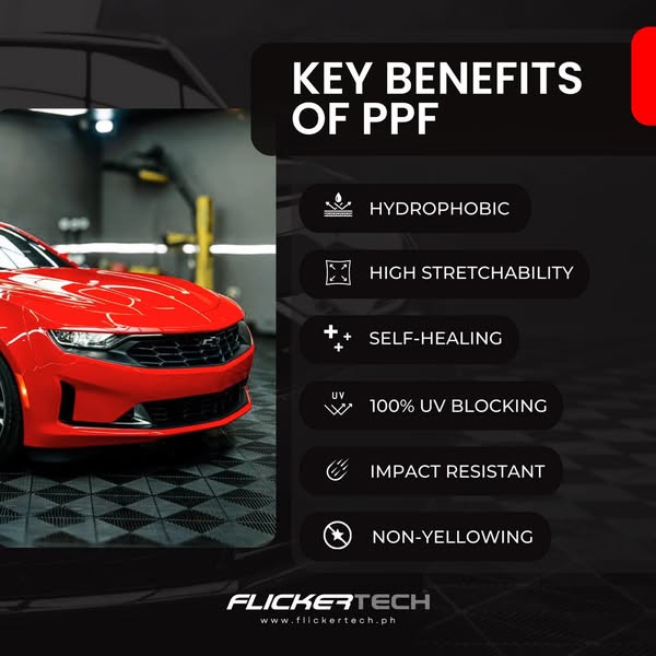 搜索关键词 paint protection, car detailing, car care, ppf installation, scratch protection, uv protection, auto detailing, flicker tech, car treatment, vehicle protection优势 Shields car from scratches and chips,Protects from UV damage,Adds a stunning gloss,Self-healing properties,Enhances vehicle's appearance