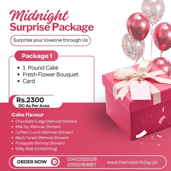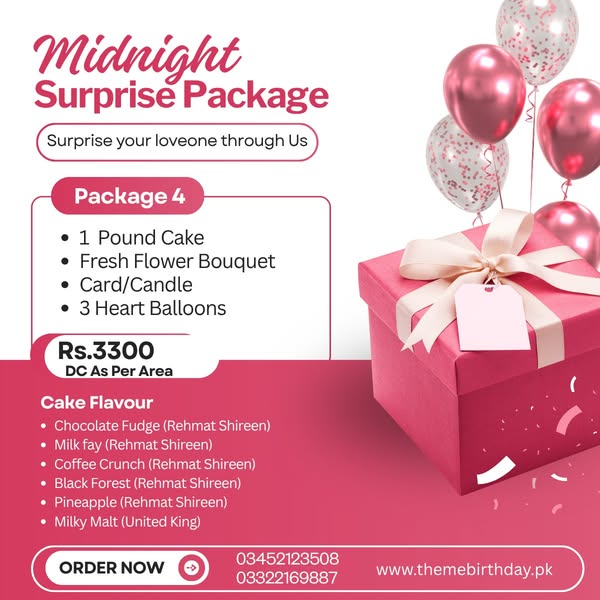 搜索关键词 midnight surprise, anniversary gift, birthday surprise, chocolate bouquet, flower bouquet, surprise delivery Karachi, romantic gift, rose bouquet, Karachi gift delivery, gift service优势 Convenient ordering,Variety of gift options,Surprise delivery