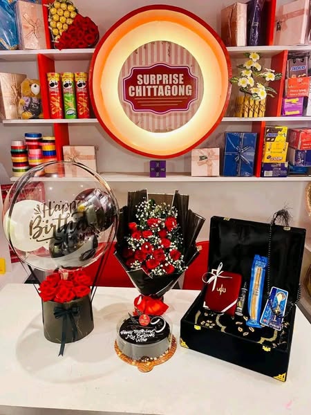 Surprise Chittagong-এর মাধ্যমে পাঠান সারপ্রাইজ গিফট, কেক, ফুল বা এক্সক্লুসিভ গিফট হ্যাম্পারস!