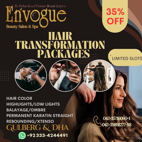 搜索关键词 beauty salon Lahore, bridal makeup package, hair styling services, skin whitening treatment, Envogue bridal couture, turkish western maxies, party wear dresses, customize dress design, worldwide dress delivery, beauty courses Lahore优势 50% off on various beauty services,Wide range of bridal packages,Availability of advanced beauty treatments,Imported Turkish western maxies available,Customization and worldwide delivery options