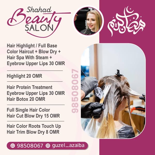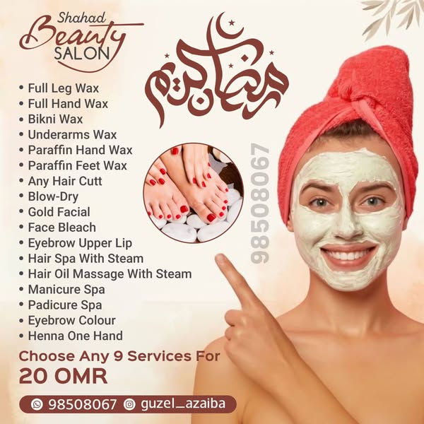 搜索关键词 ramadan beauty offers, salon services Muscat, beauty salon Oman, shahad beauty fashion, whatsapp beauty salon, special salon promotion, female beauty services, ramadan promotion, beauty fashion centre, salon beauty deals优势 Special Ramadan Offer,Convenient Contact via WhatsApp
