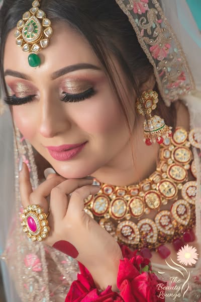 搜索关键词 beauty lounge, makeover service, bridal heritage, anzara outfit, exclusive jewelry, farhana hossain, beauty salon makeover优势 Focus on beauty and harmony,Endorsement by Coco Chanel quote,Showcasing multiple partners (Outfit, Jewelry)