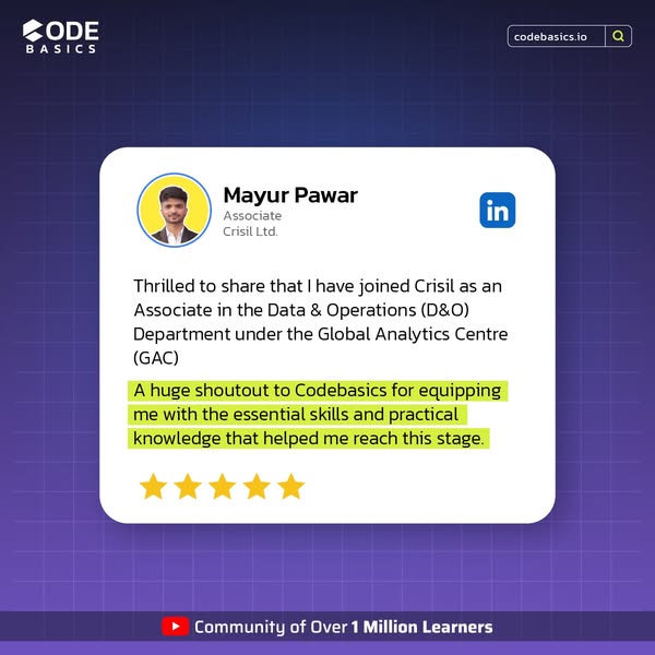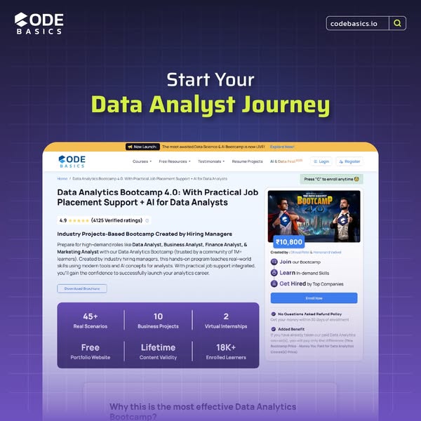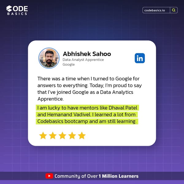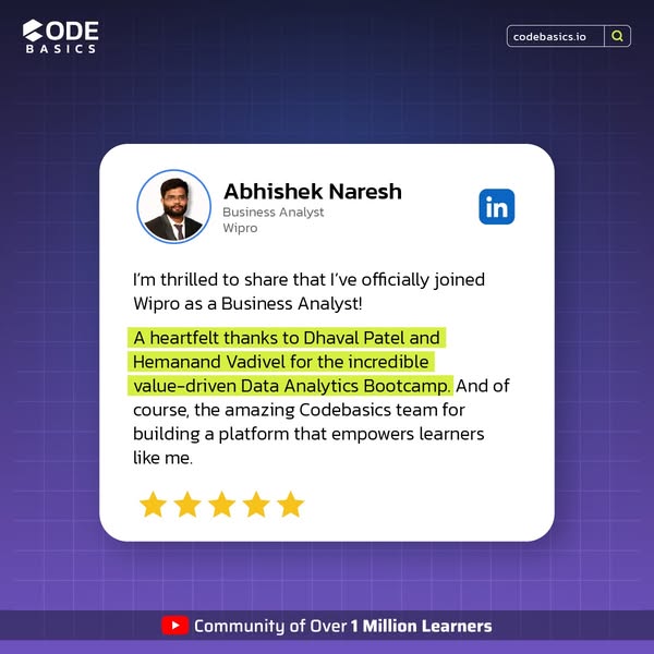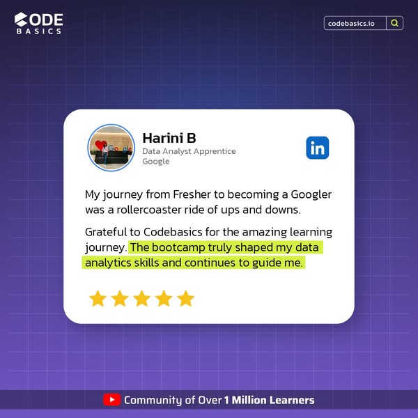 Codebasics Bootcamp offers lifetime content validity, real projects, and Practical Job Assistance. Join over 1 million learners today!