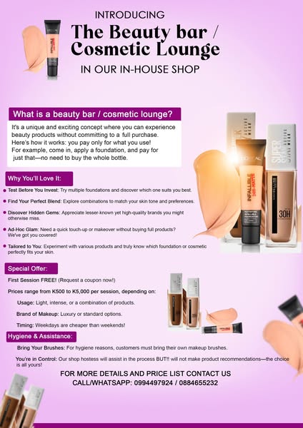 ✨ Book an appointment today! Pay us a visit and discover the beauty you’ve been missing. ✨ Our sales lady will also be able give you advice and tips on which foundation can suit you ..However!!! it should be your choice