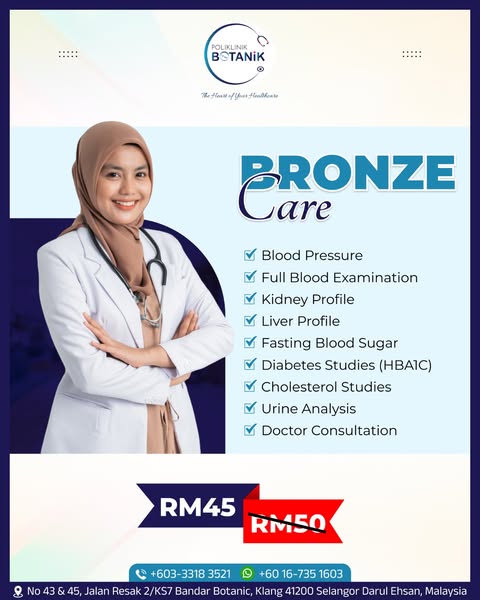 搜索关键词 health screening malaysia, affordable health checkup, ecg free promotion, poliklinik botanik offer, june health promo, wellness first checkup, stay healthy malaysia, primary care promo, bronze care silver shield, gold guard package优势 Affordable pricing,Multiple package options,Free ECG included,Easy access (walk-in)