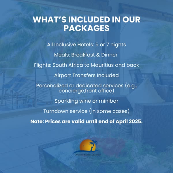 搜索关键词 Mauritius travel, affordable vacation, South Africa travel, holiday package, beach getaway, island escape, travel deals, cheap flights, exotic travel, limited offer优势 Affordable price,Exotic destination