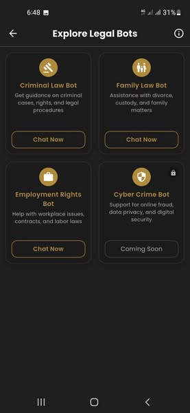 The AI models are trained, fine-tuned and prompt engineered to answer questions relating to their legal domains. The reasoning of the AI models uses RAG system to retrieve specific legal precedents from the based on the user queries.