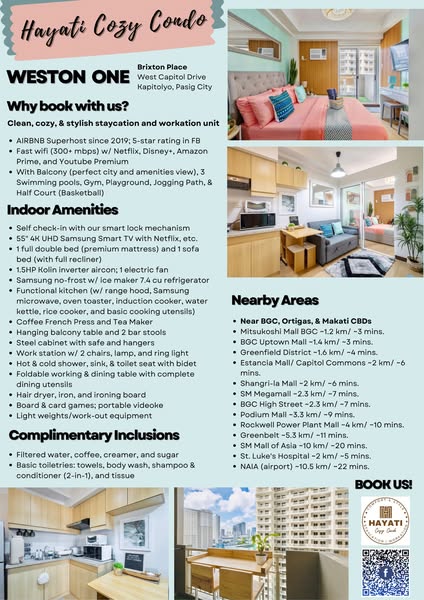 #AirbnbPhilippines #AirbnbManila #Staycation #Workation #CondoRental #Superhost #LuxuryAmenities #ResortTypeCondos #HayatiCozyCondo #BGCStaycation #QuezonCityStaycation #TomasMoratoStaycation #PasigCityStaycation #MandaluyongStaycation