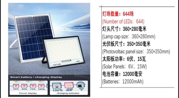 ✅电池充满电可以亮18个小时 ,太阳能灯的亮度是跟着电池的电量来控制,可以亮整晚