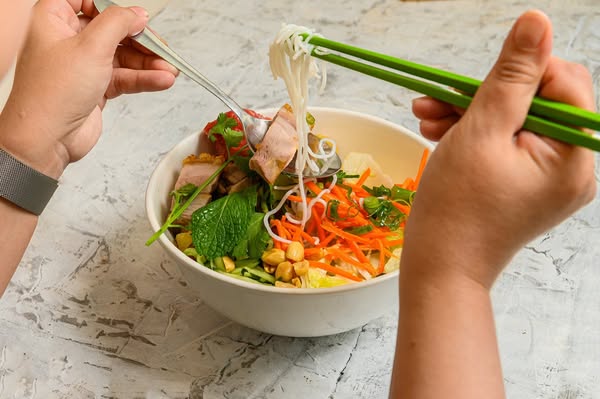 1. Combo deluxe noodle salad: packed with delicious, flavorful meats.( pork meat ball, pork spring roll, crispy pork)