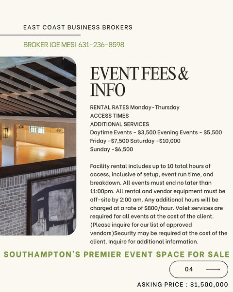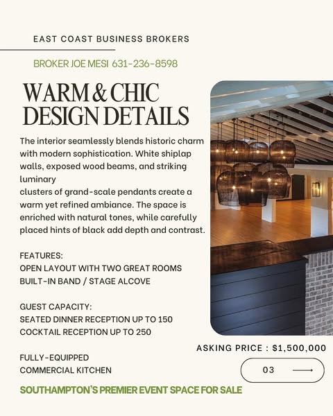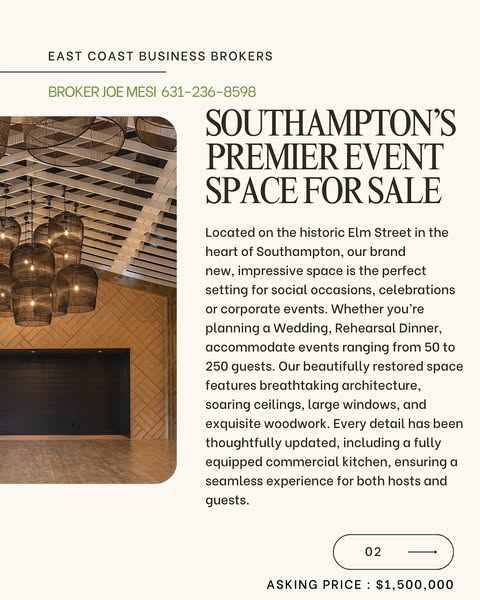 ✨ Stunning Event Hall for Sale in Southampton!  This is an AMAZING deal for an incredible space! Perfect for weddings, parties & more. Don’t miss out on this unique opportunity! Contact broker Joseph Mesi for more info on this !🎉🏢 #Southampton #EventHallForSale #InvestmentOpportunity