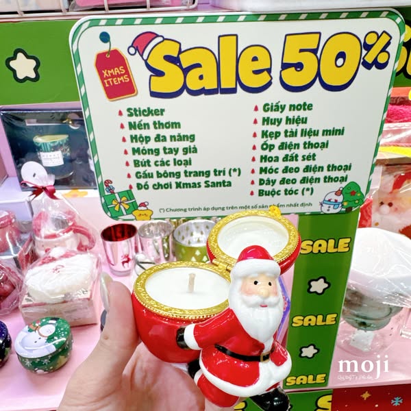 🎄 Khắp các gian hàng đều đầy ắp những Xmas items siêu hot hit với mức giá ưu đãi như nến thơm, gấu bông trang trí, trang sức, văn phòng phẩm,... SALE OFF 50%; cây thông, vòng nguyệt quế, đèn led, bình giữ nhiệt,... SALE OFF 30% và MUA 1 TẶNG 1 toàn bộ hộp quà giấy gấp Xmas nữa nè. Một thiên đường quà tặng Giáng Sinh xinh xắn với mức giá hấp dẫn đang chờ đợi các cậu tại Moji đó 🥳