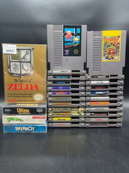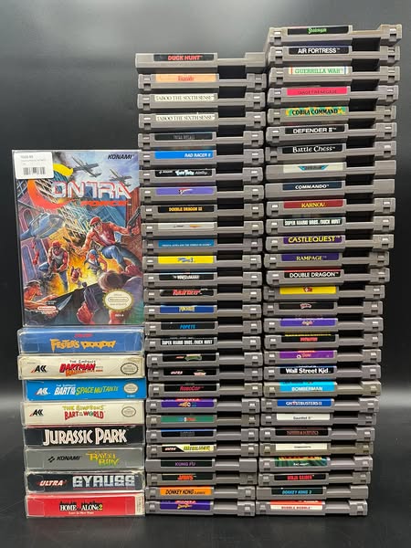 NES - Contra Force CIB, Mega Man 5 CIB, Bucky O'Hare, and Stack Up.