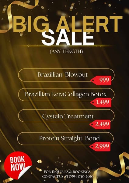 For Bookings and appointments,message us directly via our FB page.