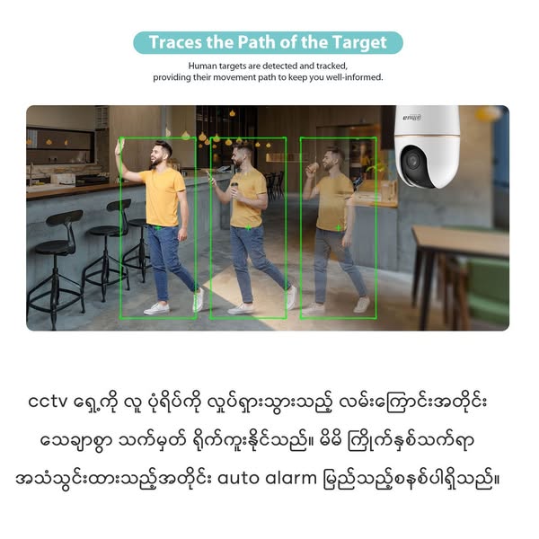 ✅ cctv ရှေ့တွင် Ai စနစ် မှ လူ ပုံရိပ်ကို လှုပ်ရှားသွားသည့် လမ်းကြောင်းအတိုင်း သေချာစွာ သက်မှတ် ရိုက်ကူးနိုင်သည်။