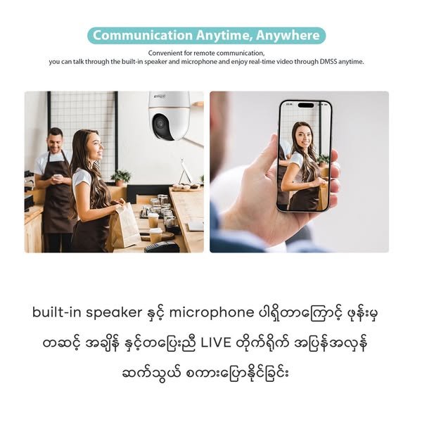 ✅ built-in speaker နှင့် microphone ပါရှိတာကြောင့် ဖုန်းမှတဆင့် အချိန်နှင့်တပြေးညီ LIVE တိုက်ရိုက် အပြန်အလှန်ဆက်သွယ် စကားပြောနိုင်ခြင်း၊