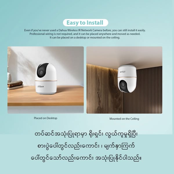 搜索关键词 Dahua Hero CCTV, Smart Shop Assistant, Wireless Security Camera, AI Human Detection, 360 Degree Camera, Easy Install CCTV, Myanmar Security Camera, DMSS App CCTV, Home Security System, Business Security Camera优势 360-degree view via DMSS app,AI human tracking,Customizable auto alarm,False alarm reduction with AI,Two-way audio communication,High-definition video (3MP/5MP),Clear night vision with IR light,Easy to install and use