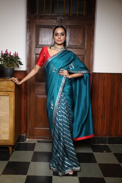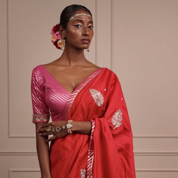 搜索关键词 silk mul saree, unique saree, gold sequin saree, hand embroidered saree, fashion saree, elegant saree, vibrant saree, special occasion saree, traditional saree, indian saree优势 Unique color combination,Hand-embroidered gold sequin flowers,Elegant and sparkly design