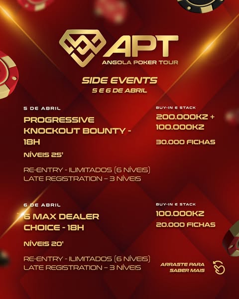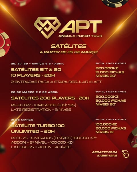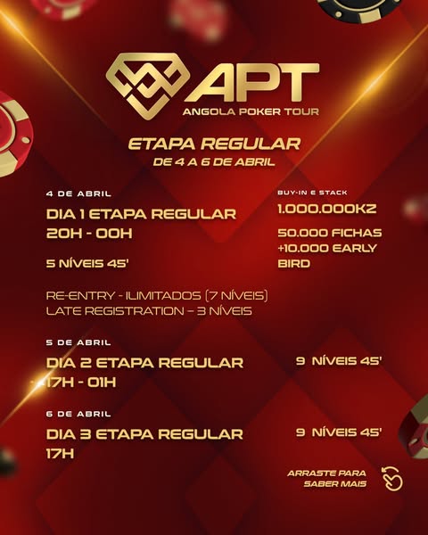 O #APTAngolaPokerTour chega com tudo de 4 a 6 de abril, com um prizepool garantido de 20.000.000 Kz!