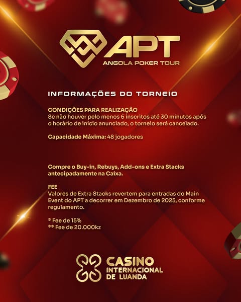 搜索关键词 Angola Poker Tour, Luanda Casino, Poker Tournament, APT Angola, Casino Internacional Luanda, 20 million Kz Prize, Poker Festival Angola, April Poker Event, Angola Casino Poker, First Angola Poker Tour优势 Guaranteed prize pool of 20,000,000 Kz,First time in Angola,Opportunity to participate in a historical event