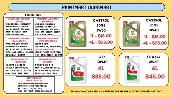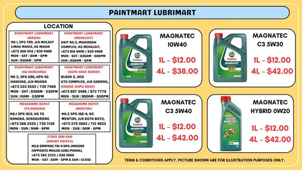 100% genuine engine oil at the best price in Brunei. All the outlets addresses is at below. Check out our new outlet inside Supa Save Beribi