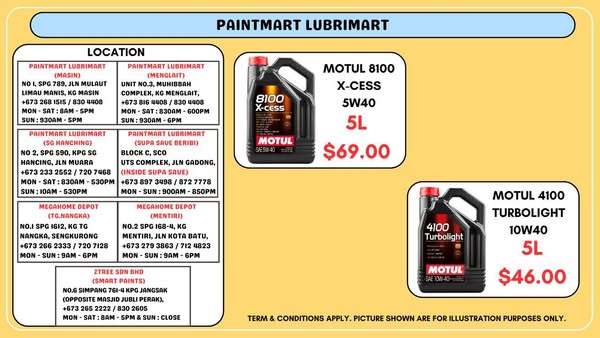 100% genuine engine oil at the best price in Brunei. All the outlets addresses is at below. Check out our new outlet inside Supa Save Beribi