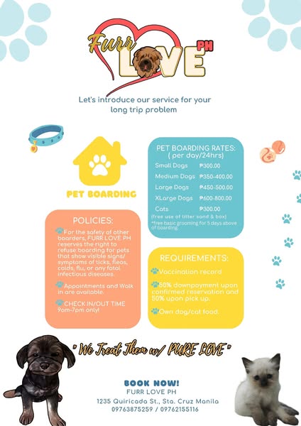 搜索关键词 pet grooming Manila, pet boarding Philippines, pet supplies shop, pet hotel Manila, dog grooming service, cat grooming service, affordable pet care, pet accessories store, pet food delivery, Furr Love PH优势 One-stop shop for pet needs,Wide range of services (grooming, boarding),Convenient location in Manila,Affordable grooming prices