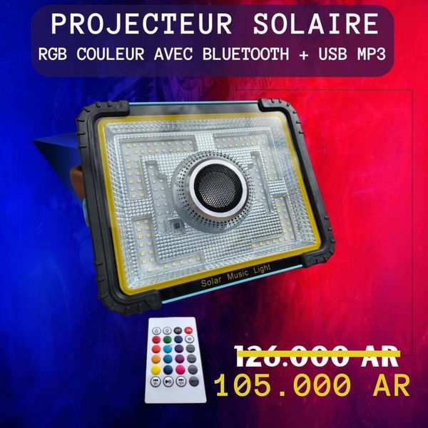 搜索关键词 solar projector, bluetooth speaker, led lighting, energy saving, Madagascar, micro SD, solar energy, eco mode, color led, outdoor lighting优势 Solar powered,Bluetooth connectivity,Micro SD card support,Color LED,8h battery life in eco mode