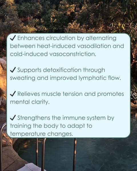 𝟯. 𝗛𝗲𝗮𝘁 – Step into a sauna, steam room, or hot shower. The warmth opens pores, promotes sweating, and helps flush out toxins while further loosening tight muscles.