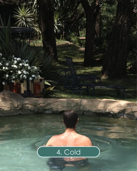𝟰. 𝗖𝗼𝗹𝗱 𝗘𝘅𝗽𝗼𝘀𝘂𝗿𝗲 – A quick cold shower, plunge pool dip, or fresh air exposure stimulates the body’s natural response to temperature changes. The sudden coolness constricts blood vessels, reduces inflammation, and invigorates the nervous system.