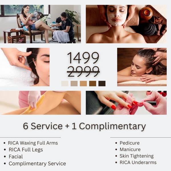 3499 Package: Ultimate Luxury 🌟 Ultimate Luxury for Only ₹3499! Indulge in the most luxurious salon experience with our Ultimate Luxury package. Perfect for those who deserve the best! What’s Included: 🌸 Full arms, legs, and underarm Rica waxing 🌼 D-Tan pedicure & manicure 🌺 Full face threading 🌟 Skin tightening ✨ Advanced facial 💆 L'Oréal hair spa 🌟 LED mask facial 🌼 Full body waxing (bikini excluded) ✨ 1 additional complimentary service of your choice Why settle for less when you can have the best? Limited time offer. Book now and experience luxury like never before!