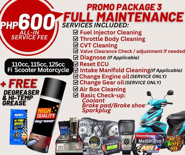 ⚠️Full Maintenance Service + FREE Degreaser & Hi-Temp Grease (Fi Motorcyles only)