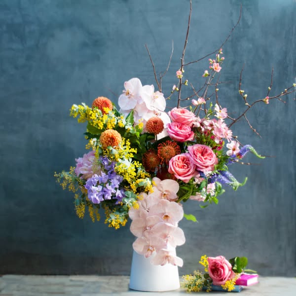 搜索关键词 pastel lavender flowers, ultra violet arrangement, floral home decor, sweet pea roses, purple hydrangea, glass vase arrangement, elegant flower gift, striking floral design, home accent flowers, gift for her优势 Striking new design,Brilliant medley of flowers,Elegant color palette