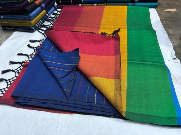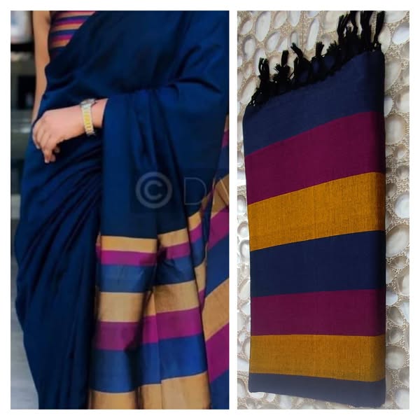 This masterpiece comes alive with eye-catching colours, enriched with silver and gold threads, making it a saree that truly stands out. Woven with double yarns (80-2) and 60 threads per square inch, it carries unmatched elegance and comfort. 💎