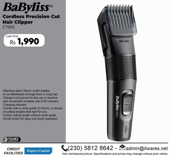 搜索关键词 Babyliss hair clipper, Babyliss curling tong, hair dryer online, hair straightener price, hair styler shop, Mauritius online shopping, Rogers Capital Credit, Free delivery service, Rodrigues shipping, MCB Juice Payment优势 Wide range of hair styling tools available,Shop online,Cash or MCB Juice payment on delivery,Rogers Capital Credit Facilities,Free Delivery,Shipping to Rodrigues available