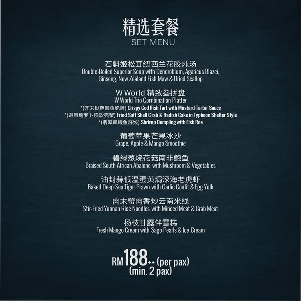 #WWorld #ChineseRestaurant #Penang #PenangEats #PenangFood #CelebrationDinner #SetMenu #Gathering #DinnerVenue #Celebration #EventVenue #中餐厅 #槟城 #中式料理 #聚餐首选 #聚会 #限时优惠 #套餐