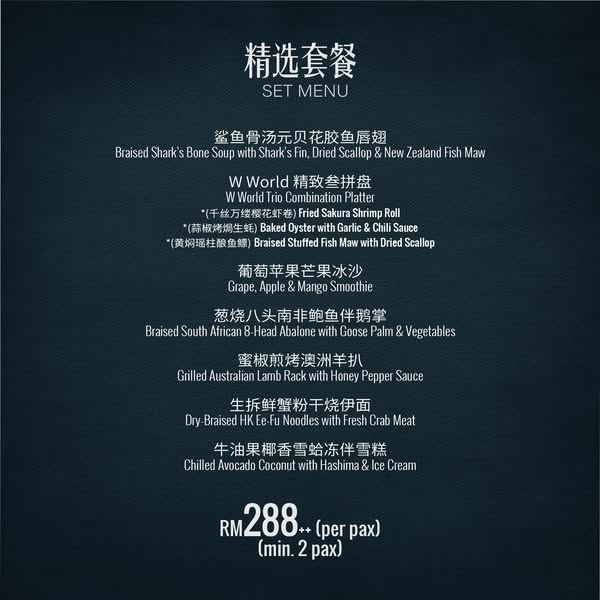 搜索关键词 WWorld Penang, Chinese Restaurant, Penang Food, Celebration Dinner, Set Menu, Georgetown Penang, Dinner Venue, Limited Time Offer, Restaurant Promotion, Fine Dining优势 多种套餐选择,匠心搭配,精致呈现,限时供应