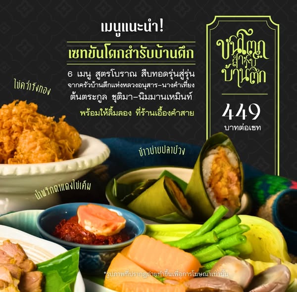 Enjoy 6 traditional recipes passed down through generations from the kitchen of Baan Tuek, created by Luang Anusarnsoonthorn and Nang Khamthieng, founders of the Chutima-Nimmanahaeminda family.