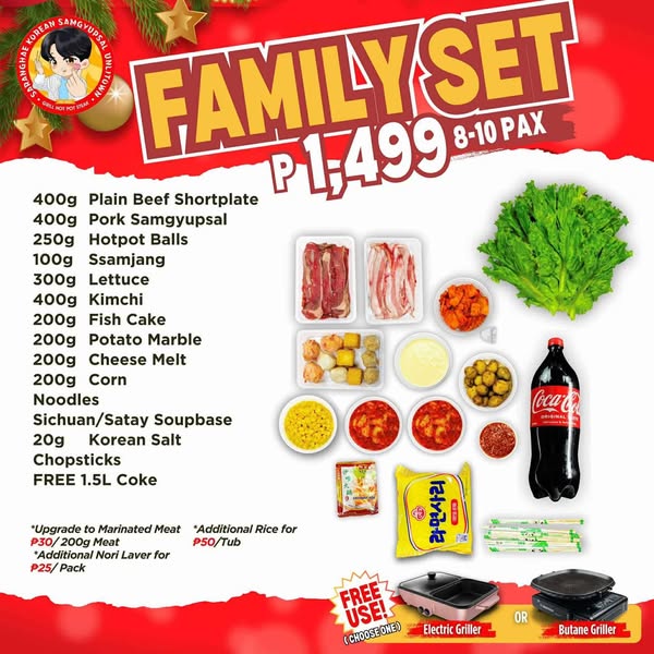 搜索关键词 Samgyup at home, Free griller promo, Korean BBQ delivery, Food delivery Bacoor, Metro Manila food, Laguna food delivery, Rizal food delivery, samgyupsal delivery, grill at home, korean bbq set优势 Convenient at-home Samgyupsal experience,Free griller promotion,Free delivery promos,Wide delivery area
