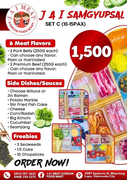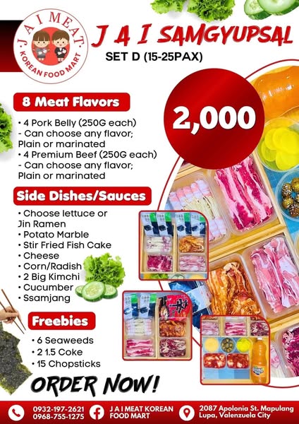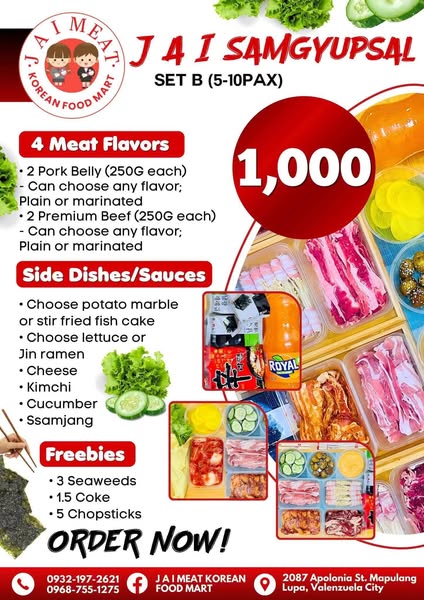 搜索关键词 premium samgyupsal set, korean food delivery, affordable korean food, samgyupsal valenzuela city, filipino korean food, family samgyupsal set, barkada samgyupsal, korean goodies, jai meat korean food mart, mapulang lupa valenzuela优势 Premium Korean Meat Cut,Affordable Price,Perfect for Family and Friends,Same Day Delivery