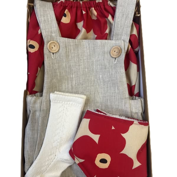 搜索关键词 baby gift set, organic romper, baby shower gift, new baby gift, country vintage babes, baby clothes online, linen baby clothes, baby socks condor, peasant top baby, dribble bib baby优势 Beautifully presented,Contains organic linen romper,Includes essential baby items,Ideal for baby shower or new baby gift